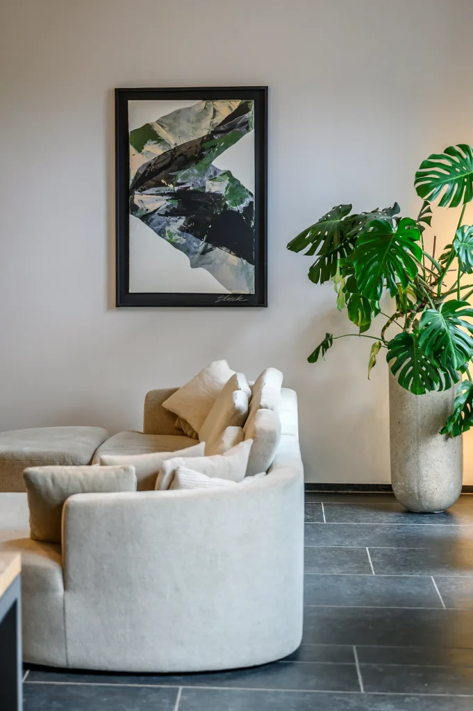 Voor Steven is kunst de ‘kers op de taart’ van een interieur. Het kan de ruimte transformeren of net een verhaal afronden. Hij benadrukt dat kunst niet per se permanent hoeft te zijn, zolang het maar betekenis toevoegt. “Laat alles in beweging, dan blijft het fascineren. Kunst mag prikkelen, vertragen, of net zorgen voor rust.”