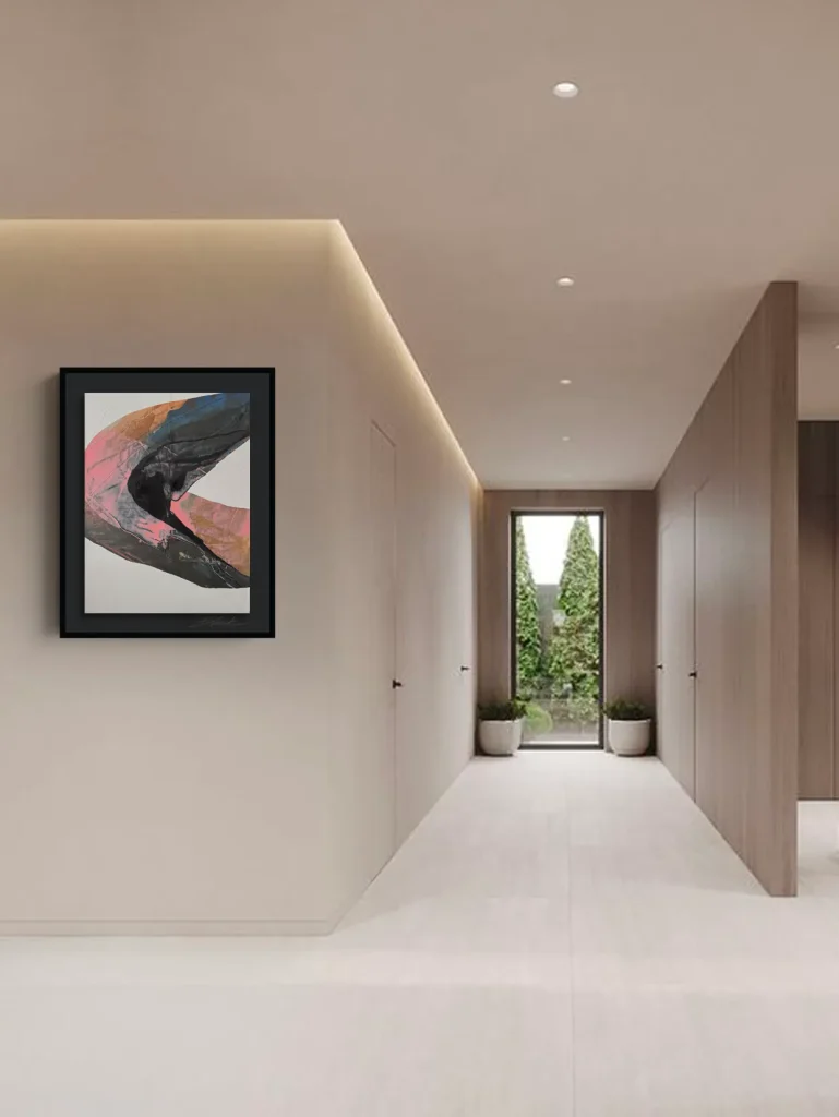 Wat zijn werk bijzonder maakt, is dat het zowel zelfstandig als in combinatie met een interieur betekenisvol is. “Ik hoef niet decoratief te zijn, maar ik wil wel iets oproepen.” Die visie zie je terug in zijn verhuur- en leaseconstructies, waarbij kunst een dynamisch element in een interieur kan zijn. Niet vast, maar altijd waardevol. “Door te werken met leasing geef ik mensen de kans om kunst te beleven, wat ruimte biedt voor ontdekking.” Naderhand ben jij natuurlijk eigenaar van je prachtige kunstwerk.  “Dat past ook perfect bij een interieur dat in beweging mag blijven; net als de mensen die erin wonen.”